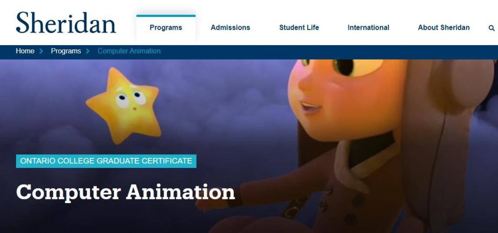 是一所加拿大公立高等学院,建立于1967年。有两个主校区,都位于加拿大第一大城市多伦多附近,在校学生共15000多人,来自全球50多个国家。Sheridan学院是动画设计师的摇篮,该专业在全世界排名第一(2012年数据),有动漫界的“哈佛”之称。