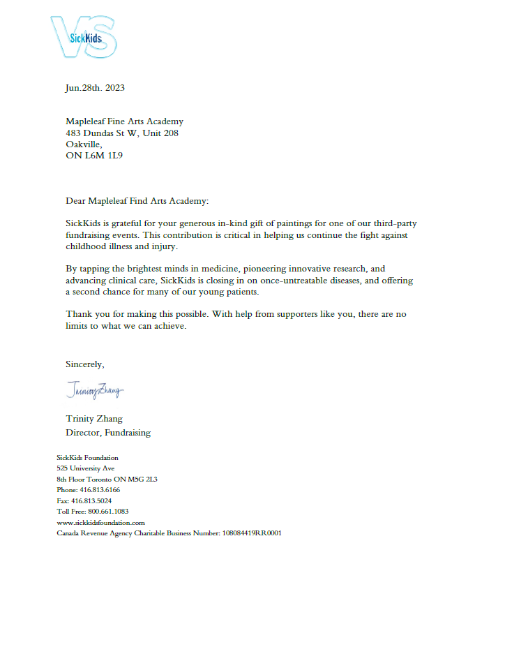 2023 Canada Youth Festival-SickKids Gift of Paintings