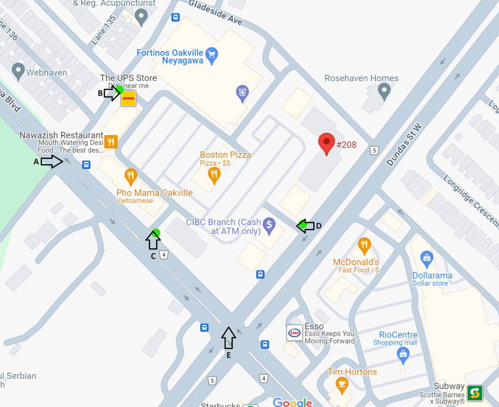 Turn left at the trafiic light next to Dundas St. W, then turn right at the first way to the plaza.
